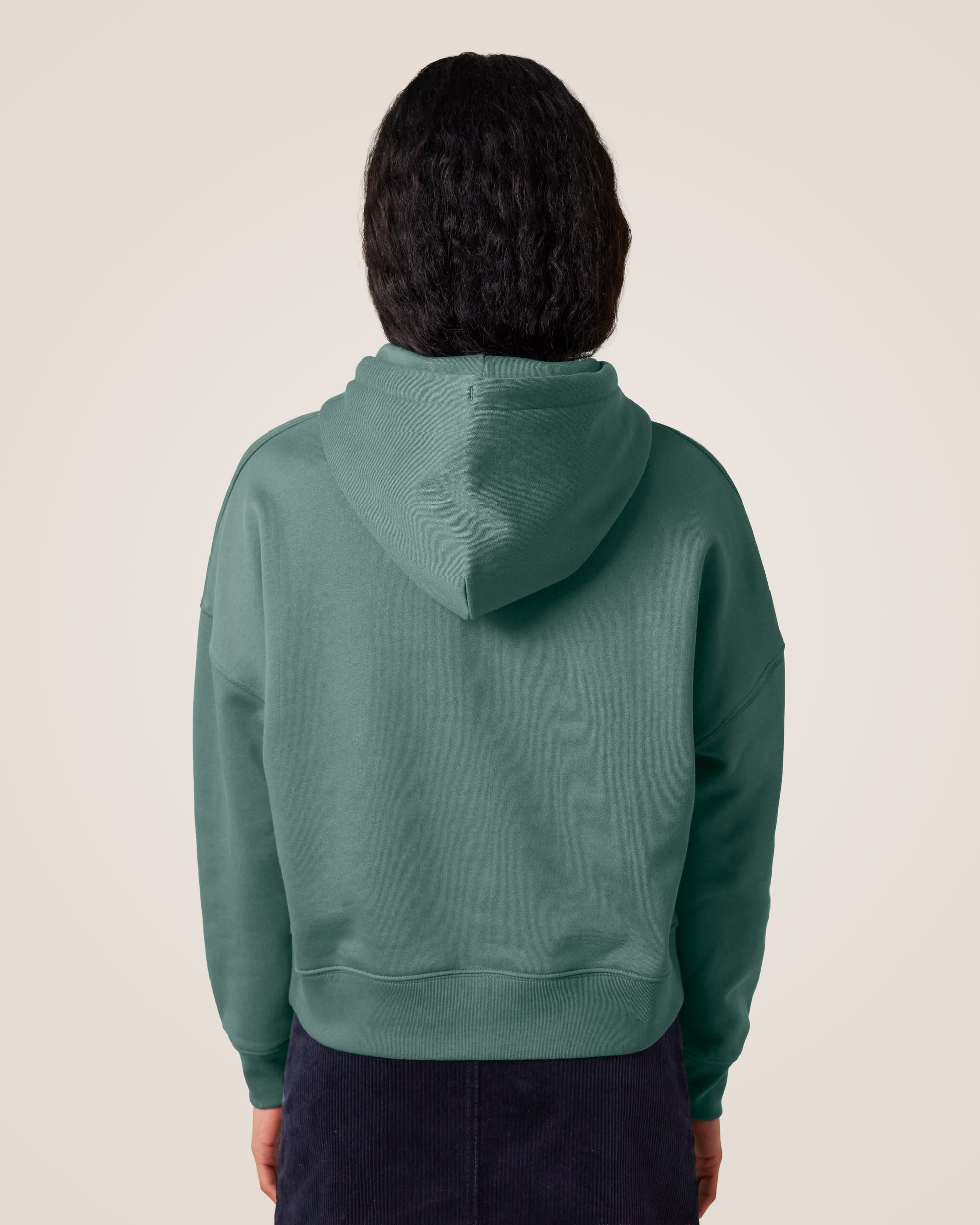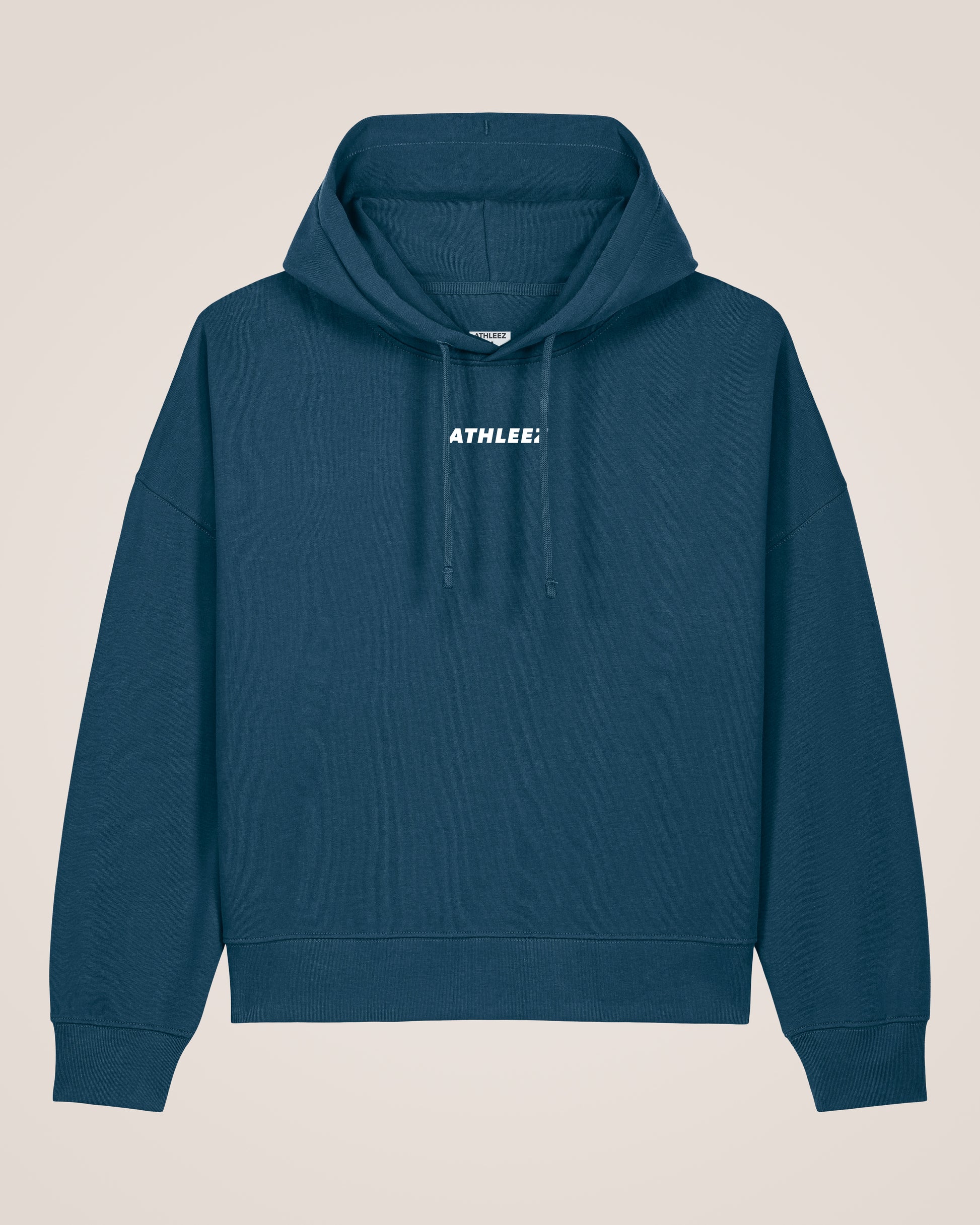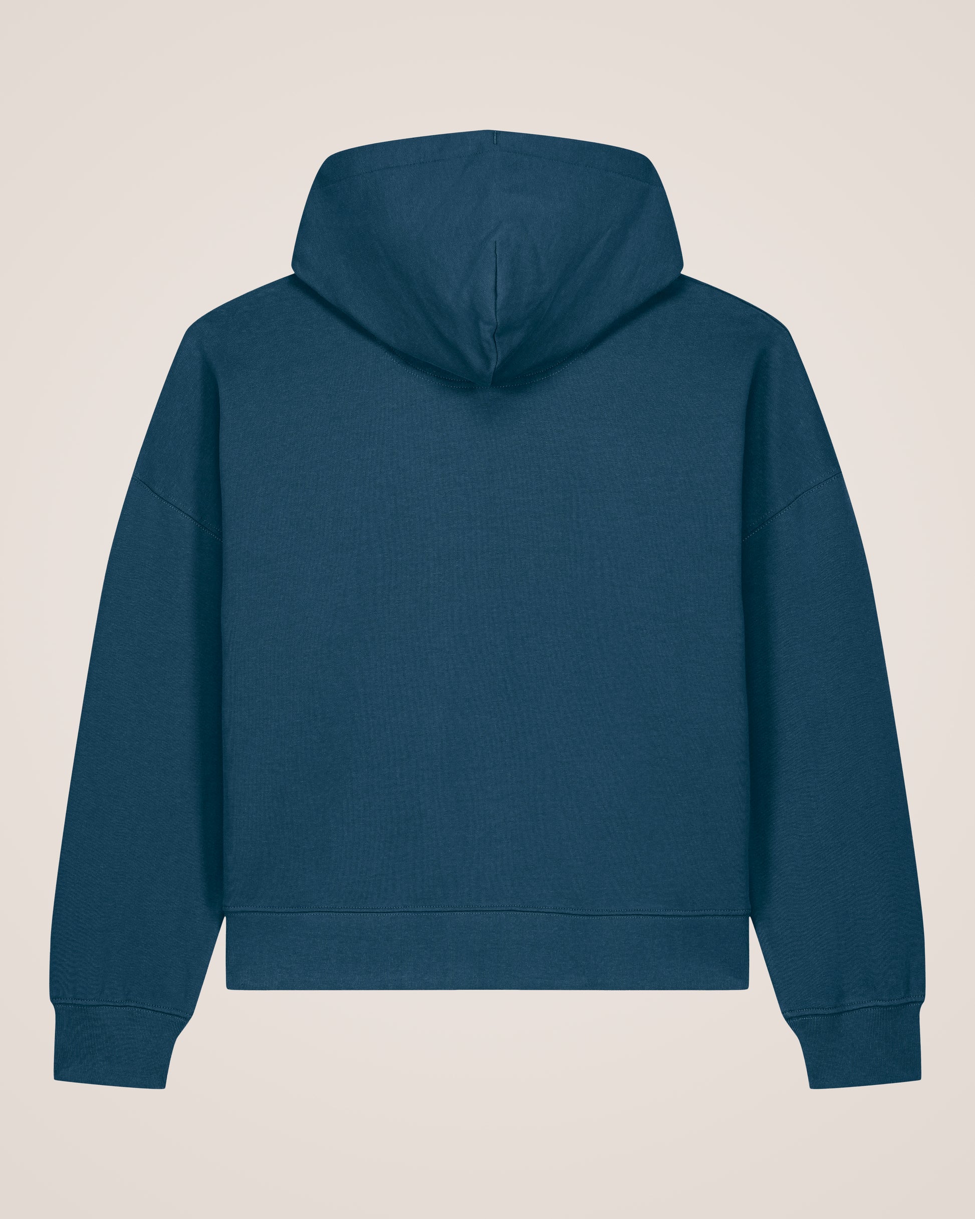 Mit relaxed Fit und leicht abfallenden Schultern sorgt er für eine lässige, feminine Silhouette. Die doppellagige Kapuze und flache gleichfarbige Kordeln verleihen dem Hoodie ein minimalistisches, hochwertiges Finish.